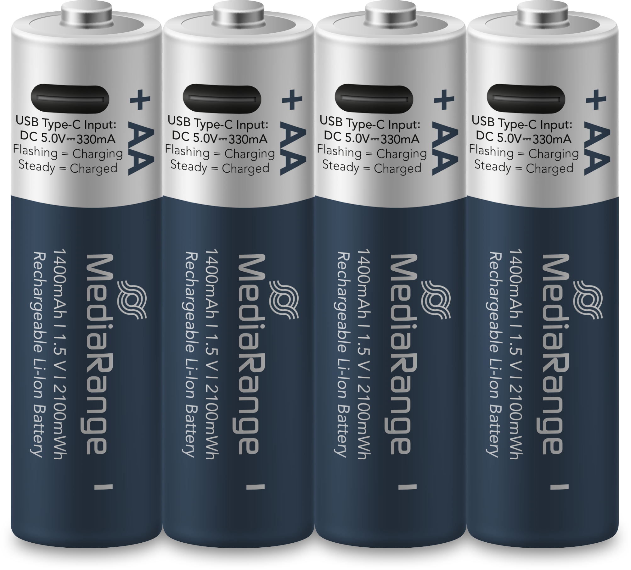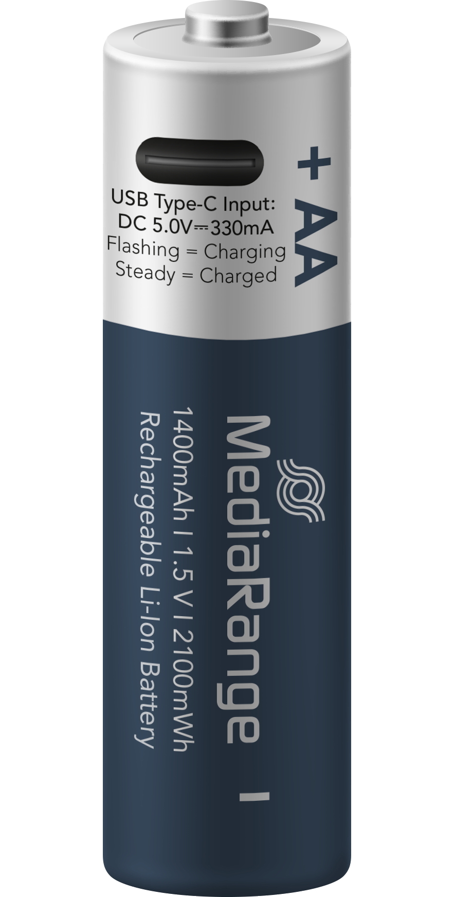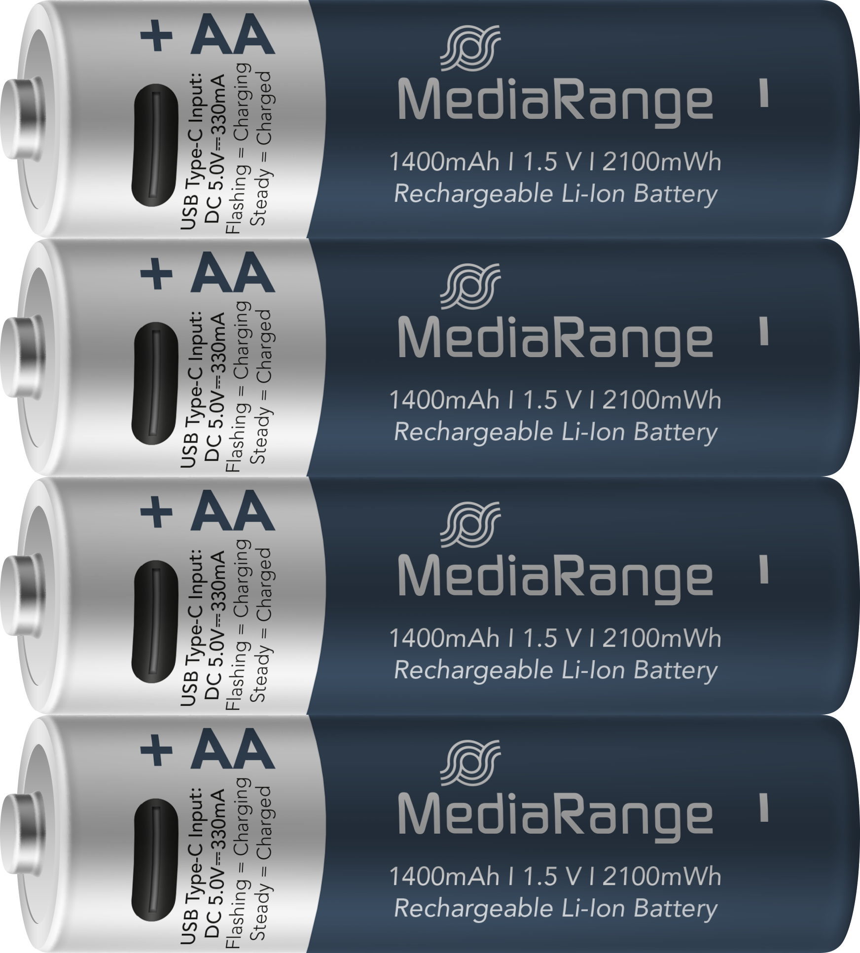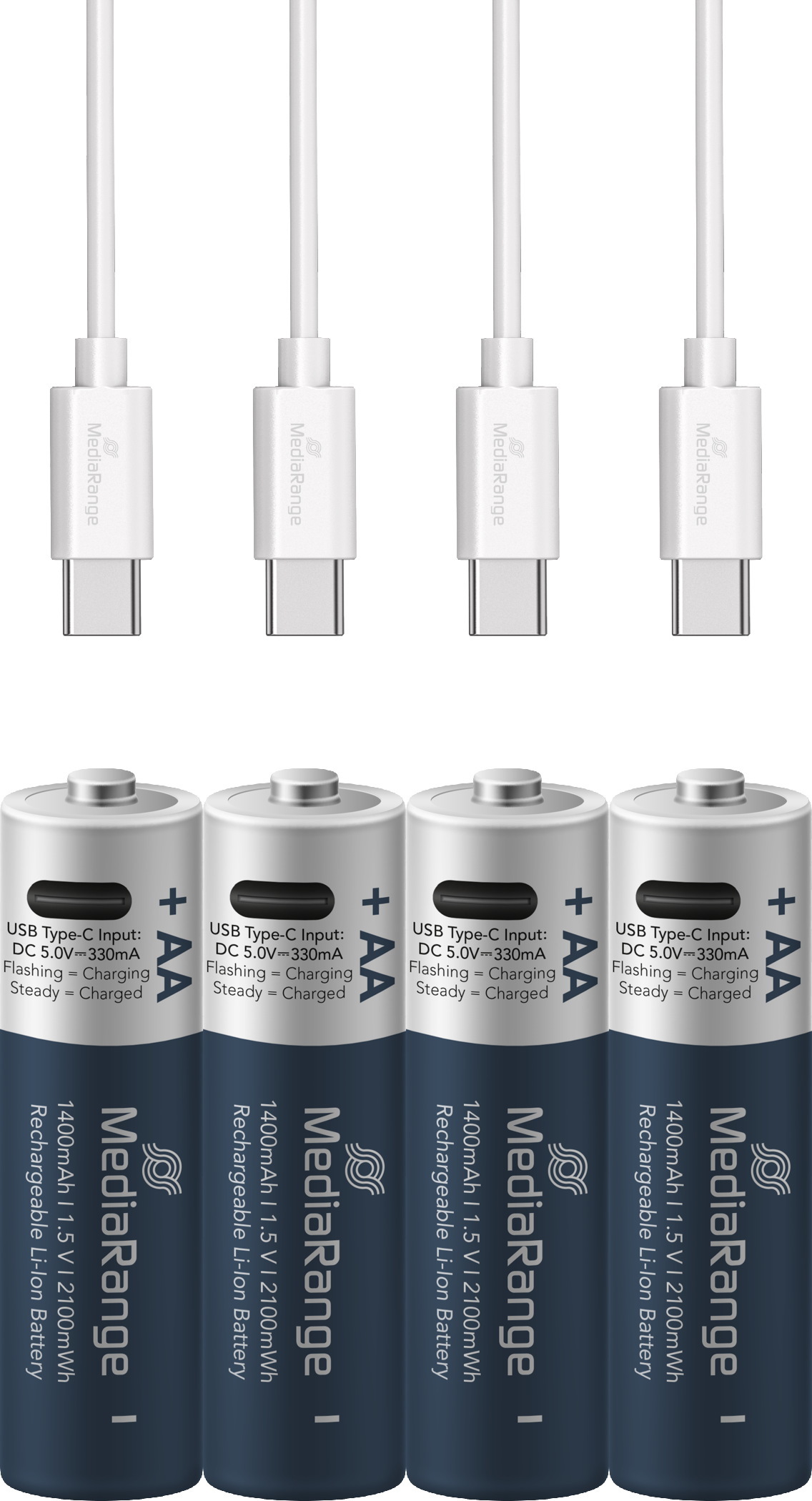 4 Mediarange Akku AA mit USB-C Anschluss Li-Ion Mignon 1.5V 1.400mAh Ladekabel
